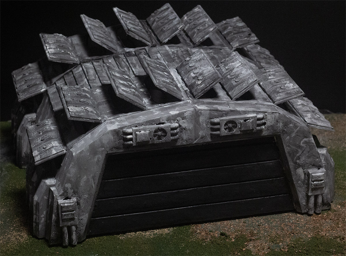 This set of STL files allows for the construction of a rocket hanger of in-determined length. It includes a set of front doors, two different interior sections, and a set of rear walls.