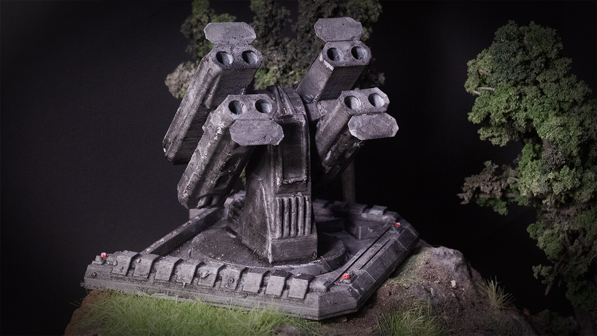 Defending a space port from enemy aircraft requires a multi-layered defensive strategy. These fixed emplacement missile batteries make up the last line of that defense. This 32mm scale kits contains all the pieces required to build your own Surface to Air Missile Battery.